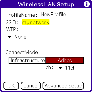 WiFi network configuration - AdHoc - Sony CLIÉ: